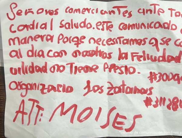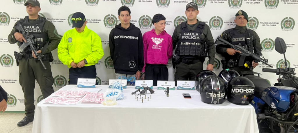 La captura de los procesados se materializó durante un operativo de allanamiento y registro realizado el pasado 24 de febrero por unidades de la Policía Nacional en una vivienda del barrio Olivos II, ubicado en la comuna León XIII de Soacha. “En la vivienda fueron incautados 1 revólver, 8 cartuchos, 2 celulares, 2 motocicletas, 3 cascos; y 1 artefacto con material explosivo a base de pentolita”, señaló la Fiscalía. Además, se encontraron cuatro panfletos extorsivos escritos con tinta roja, elementos que coinciden con el modus operandi de ‘Los Satanás’ para presionar el pago de cuotas extorsivas en el sector transporte.