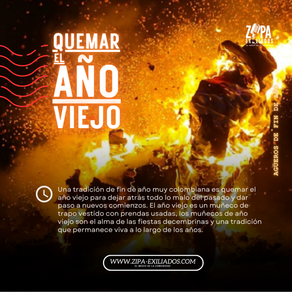 Una tradición de fin de año muy colombiana es quemar el año viejo para dejar atrás todo lo malo del pasado y dar paso a nuevos comienzos. El año viejo es un muñeco de trapo vestido con prendas usadas, los muñecos de año viejo son el alma de las fiestas decembrinas y una tradición que permanece viva a lo largo de los años.