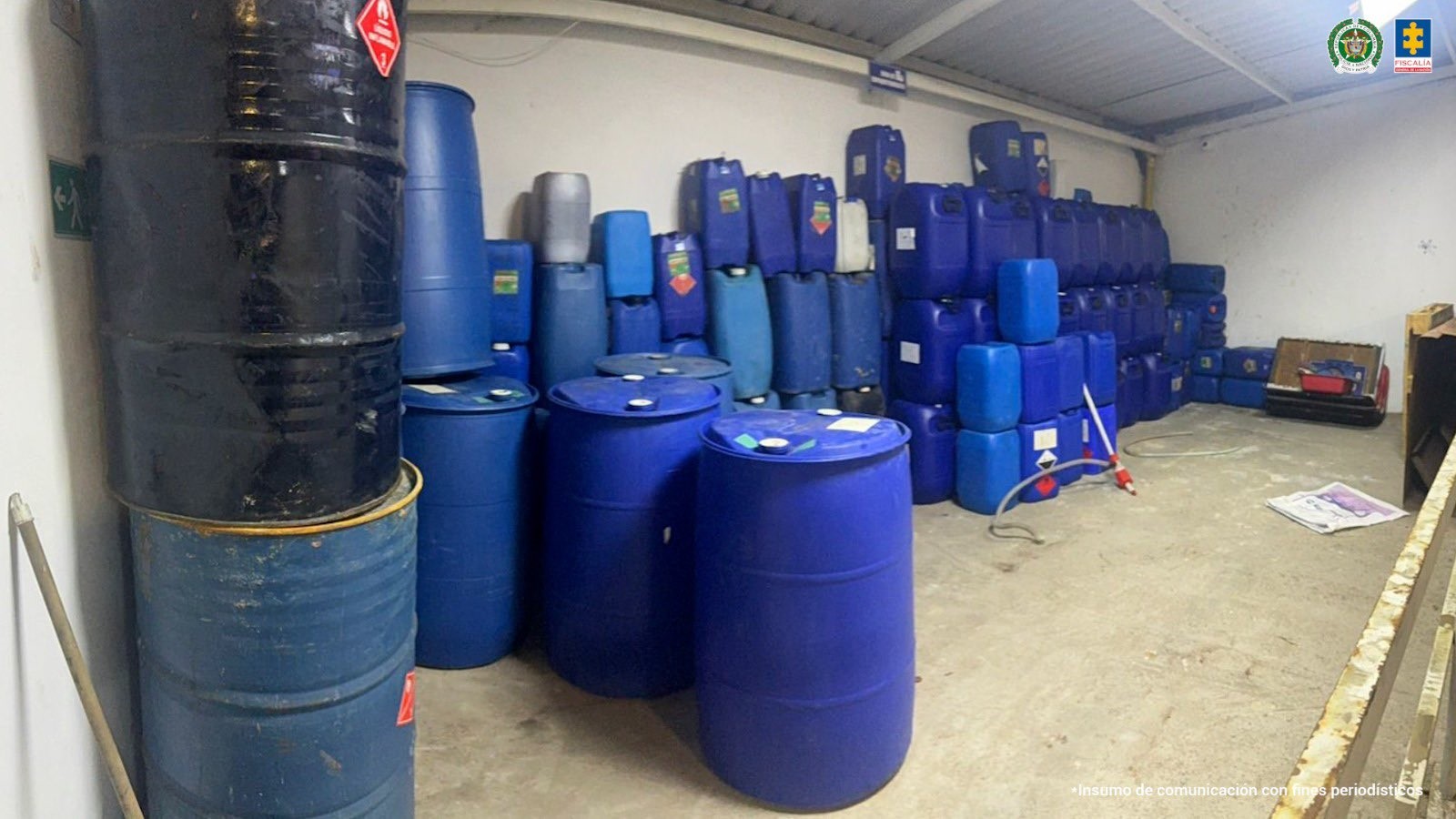 Según este ente de control, en diligencia de registro y allanamiento, realizado de manera articulada con unidades de la Policía Nacional fueron incautadas en el lugar más de 25 toneladas de precursores. Las sustancias líquidas estaban acopiadas en 213 canecas plásticas y metálicas; mientras que un polvo de color negro permanecía agrupado en 42 sacos. Adicionalmente, se encontraron 5 hornos microondas, un celular, un tractocamión y un furgón. Los elementos hallados superarían en valor los 2.600 millones de pesos.