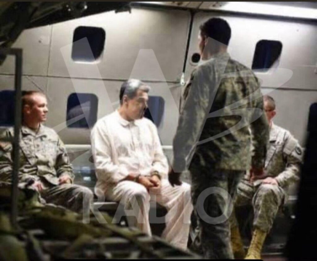 El medio de Comunicación W Radio Colombia, a cargo de Julio Sánchez Cristo, director de La W, reveló la primera imagen de la captura del presidente Nicolás Maduro por Estrados Unidos.