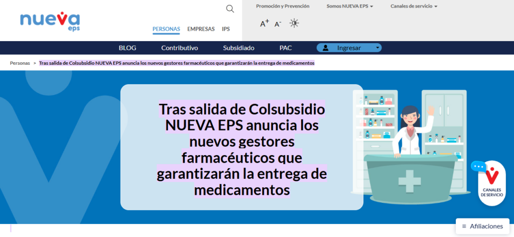 #ComunicadoDePrensa🗞️I Nueva EPS avanza en las acciones correspondientes para garantizar el acceso oportuno y seguro a medicamentos de todos nuestros afiliados tras la terminación unilateral de contrato de Colsubsidio.