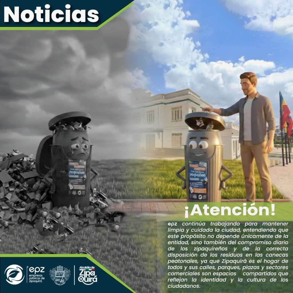 Aunque Empresas Públicas de Zipaquirá (EPZ) continúa trabajando para mantener limpia y cuidada la ciudad, su propósito no depende únicamente de la entidad, sino también del compromiso diario de los zipaquireños y de la correcta disposición de los residuos en las canecas peatonales, ya que Zipaquirá es el hogar de todos y sus calles, parques, plazas y sectores comerciales son espacios compartidos que reflejan la identidad y la cultura de los ciudadanos.