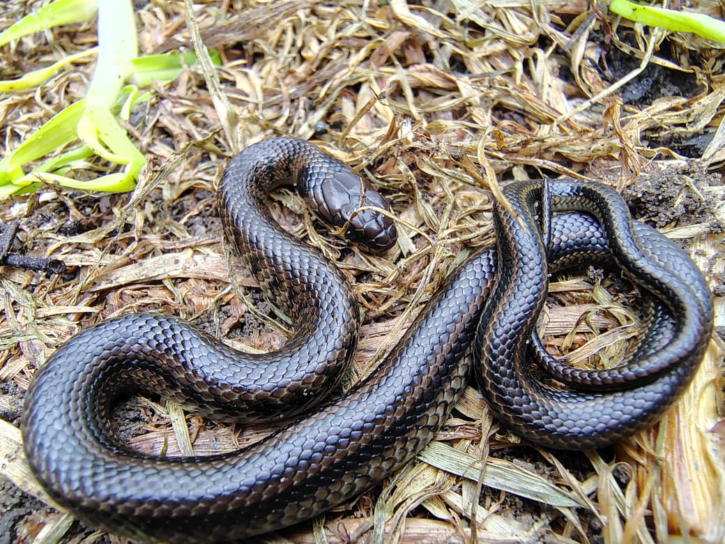Uno de los hallazgos más llamativos fue la presencia de una culebra de pantano (Erythrolamprus epinephalus) una especie de hábitos terrestres que se resguardaba bajo una tapa plástica de un tanque de agua en el suelo, intentando encontrar un parche verde en medio de las máquinas y los residuos impregnados con aceites usados, aguas y baterías de plomo ácido usadas en la actividad ilícita.