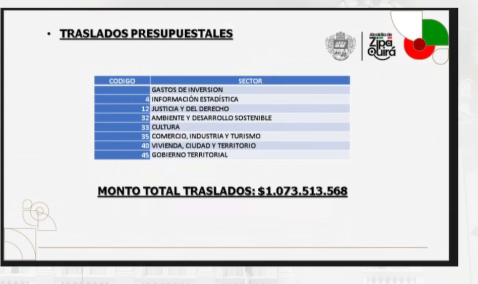 Respecto a los traslados presupuestales, según la Secretaría el destino sería para cumplir diversas metas del plan de desarrollo en sectores como cultura, justicia del derecho, ambiente, desarrollo sostenible, consorcios, vivienda, turismo, ciudad y territorio, y cuyo valor supera los $1.073 millones.