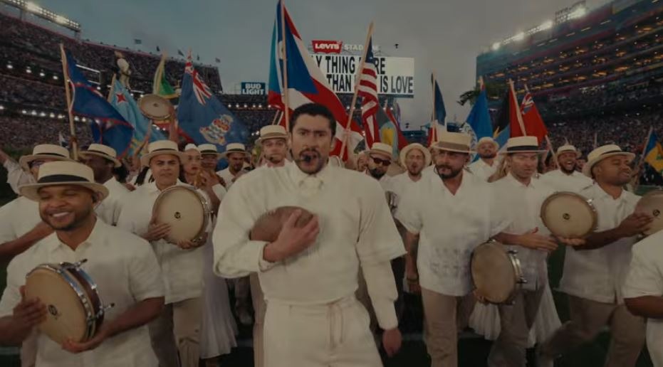 Sin embargo, entre los acordes del “Conejo Malo”, más de 100 millones de espectadores fueron testigos de una oda a la latinidad que paralizó el encuentro entre los Seattle Seahawks y los New England Patriots. Durante 13 minutos, la puesta en escena transportó al público a la cotidianidad de Puerto Rico y de América Latina. Desde extensos cañaduzales hasta escenas de abuelos jugando dominó y mujeres compartiendo en el barrio, la estética fue un tributo a la raíz. El simbolismo inició con un puesto de “Piraguas”, donde las botellas de almíbar, decoradas con las banderas de Colombia, Puerto Rico, México y España, funcionaron como una declaración silenciosa pero contundente. Lo que siguió: