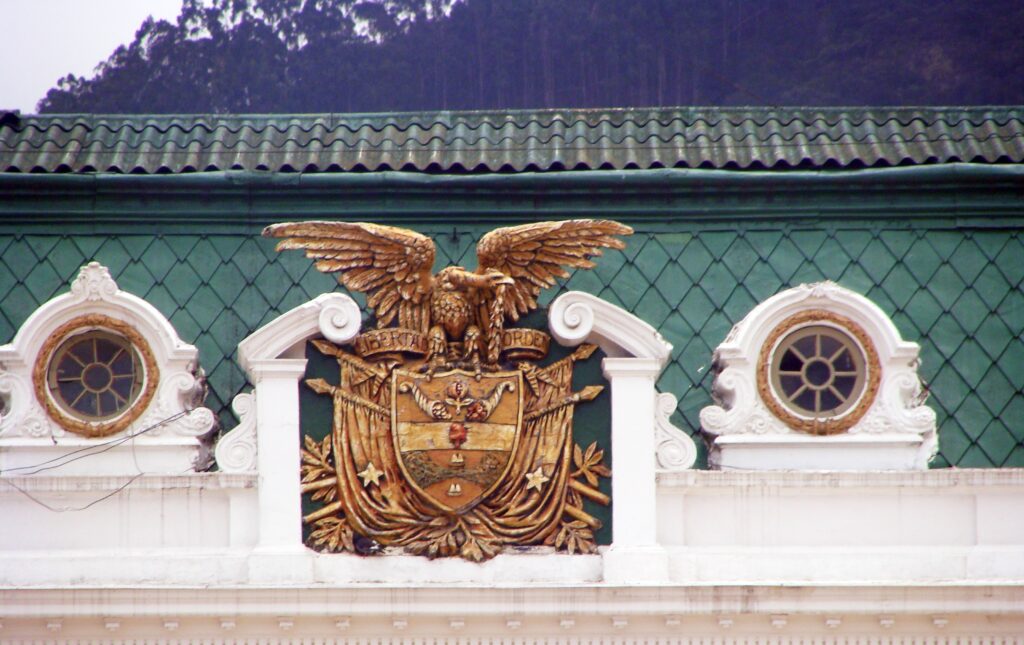 Al respaldo de la parte donde normalmente se sienta la mesa directiva del Concejo, se encuentra también un óleo donde posa “El Libertador”, Simón Bolívar, en la cumbre de los Andes, enmarcado por dos atlantes que no solo sostienen en sus hombros el escudo de Colombia, rodeado además por la escultura de dos niños pequeños, sino que se resaltan en sus manos coronas de laurel de color dorado, simbolizando la libertad. Estos toques artísticos, junto a otras reliquias históricas, dan al espacio un aire de reverencia y respeto por los acontecimientos que han marcado la historia del país.