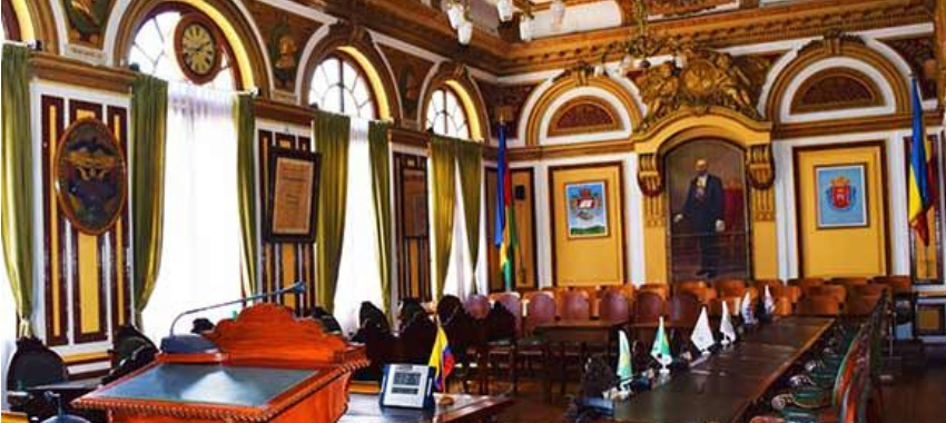 El que ingresa al recinto es recibido por un salón de sesiones de estilo neobarroco francés, un espacio que evoca la elegancia de los siglos XV y XVI, cuando los reinados de Luis XV y Luis XVI daban forma al arte y la cultura de Europa. Este diseño distintivo no solo lo hace diferente de otros salones municipales del país, sino que también refleja la importancia histórica de Zipaquirá, que en periodo prehispánico fue conocida como Chicaquicha.