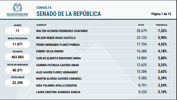 Mientras tanto en la contienda del senado y la cámara los datos van asi: