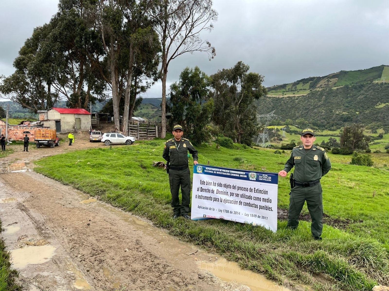 A través de la Seccional de Investigación Criminal, se realizó la ocupación de tres bienes inmuebles y de un establecimiento de comercio, con fines de extinción de dominio, en la ciudad de Bogotá y en los municipios de Viotá y Tocaima, Cundinamarca.