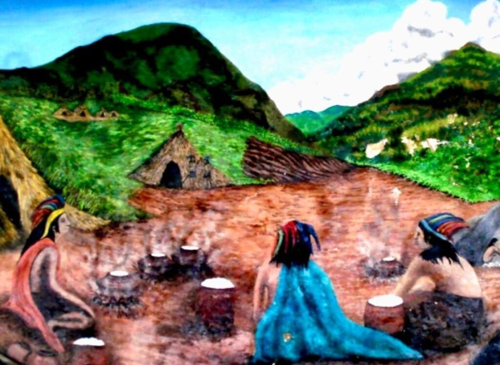 Luego los volvieron a ver en depósitos que los indios tenían a orillas del río y fue cuando por boca del Indio Pericón, (quien hacía de guía e intérprete), Don Gonzalo y sus soldados supieron, que la sal provenía de una gran planicie ubicada a gran altura, a la derecha del Río de La Magdalena, y que los indios muiscas, (moscas), que habitaban el altiplano cundiboyacense, hacían trueque con la sal y con mantas, por oro, esmeraldas, algodón, alimentos y animales, entre otros, guacamayas y loros, (aso), que “usaban como intérpretes y mensajeros ante sus dioses, debido a que aprendían a hablar su idioma”.