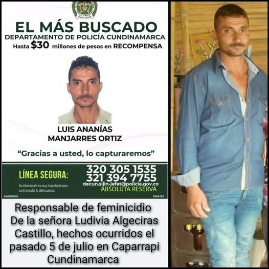 La Policía Nacional, actualizó la lista “Los más buscados Colombia” en su sitio web para declarar a Luis Ananías Manjarres Ortiz como el hombre más buscado del departamento, señalado de ser el presunto responsable del feminicidio de Ludivia Algeciras Castillo, quien era su pareja sentimental.