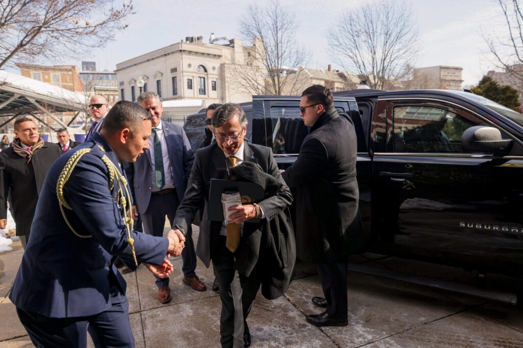 1:28 p.m. Gustavo Petro llega a la embajada de Colombia en Washington lugar donde, al parecer, será la rueda de prensa.