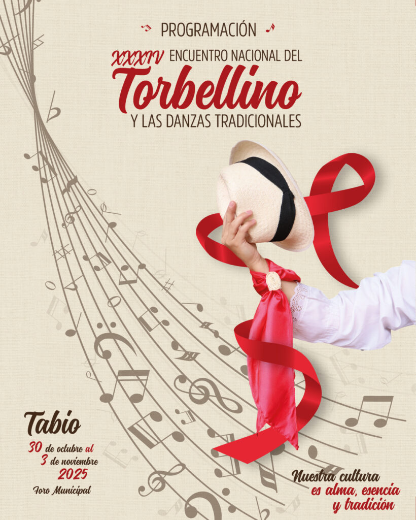 Del 30 de octubre al 3 de noviembre, el municipio de Tabio se vestirá de fiesta para celebrar una de las festividades más representativas del altiplano cundiboyacense: el Festival Nacional del Torbellino y las Danzas Tradicionales, que este año llega a su trigésima cuarta edición como un símbolo de identidad y orgullo cultural y el cual tendrá a grandes invitados de la música colombiana, tales como Maia, Luis Silva, los Autenticos Gaiteros de San Jacinto y delegaciones mexicanas, serán algunos de los invitados.