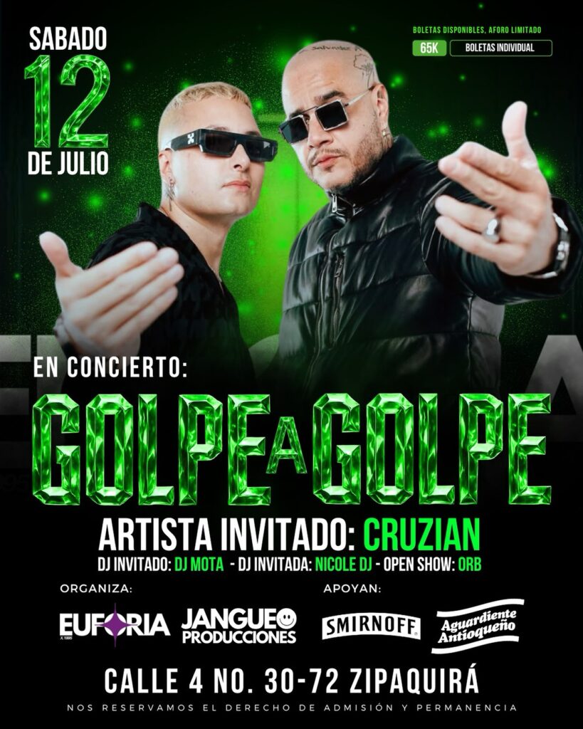 Este sábado 12 de julio de 2025, Euforia celebra su primer aniversario y la oportunidad de vivir esta fiesta es limitada. ¡Las últimas boletas están disponibles! No te quedes sin la tuya para ver a los pioneros del reggaetón, Golpe a Golpe. Asegura tu entrada comprando a través de WhatsApp 3108167864 o directamente en la página oficial de Euforia: www.euforiadiscoteca.com.