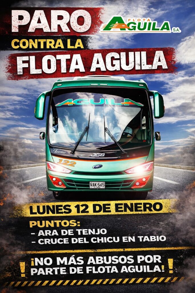 El transporte para Tabiunos y Tenjanos es clave en el desarrollo de sus proyectos laborales y de vida, la gran mayoría tiene que viajar para poder cumplir sus obligaciones, y ver cómo se queda un 30% y hasta 40% de sueldo en transportes no es justo, ahora menos para estudiantes y personas con menos capacidad adquisitiva, así que es inaceptable una vagabunderia de aumento como el que hizo esta empresa, NO SE LES VA A PERMITIR ABUSIVOS!!! Flota Aguila S A.